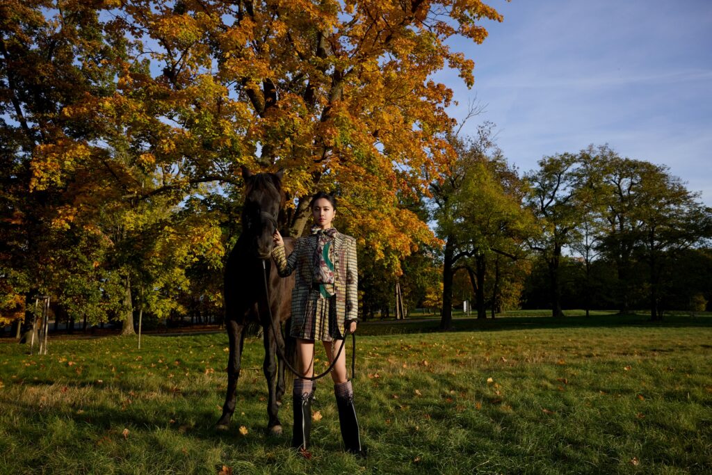 The production was not without its moments of raw, unscripted vitality. Amidst the poetic landscapes, a spirited stallion—symbolizing the unwavering loyalty of her fans (the “Knights”)—decided to embrace its own freedom, momentarily turning the set into a wild chase. “A racing horse,” Jolin remarked with her signature wit, “it probably just wanted to get off work.” Adding to the visual opulence was an Afghan Hound, whose silken coat and aristocratic poise drew Jolin’s playful admiration. “She’s more beautiful than I am,” she joked, echoing a long-standing jest among her inner circle about her resemblance to the elegant breed.