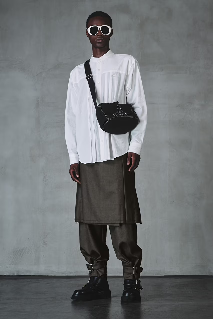 Vivienne Westwood MAN’s Fall-Winter 2025 collection arrives as a sophisticated provocation, intertwining the brand’s anarchic DNA with a modern sense of restraint. This season, rebellion isn’t loud; it is meticulously tailored, quietly surreal, and steeped in irreverent elegance.