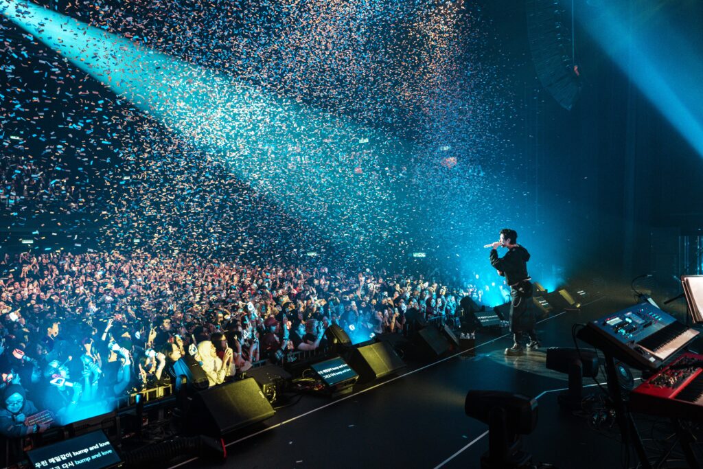 In a moment of exquisite theatricality, WOODZ invited the audience into a collective emotional purge. “Prepare to get emo,” he warned with a mischievous glint, orchestrating a satirical yet poignant “crying countdown.” This levity paved the way for the night’s most visceral sequence: the soaring ballads. “GLASS,” “CINEMA,” and the hauntingly beautiful “I’ll Never Love Again” showcased a vocal range that felt both limitless and intimate.